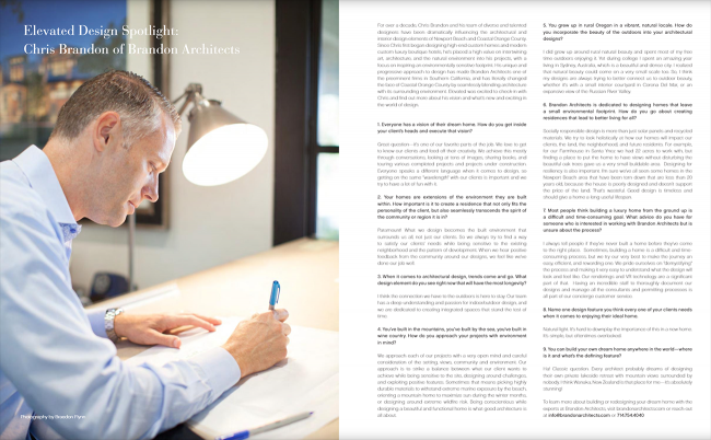"His unique and progressive approach to design has made Brandon Architects one of the preeminent firms in Southern California, and has literally changed the face of Coastal Orange County by seamlessly blending architecture with its surrounding environment."