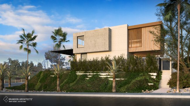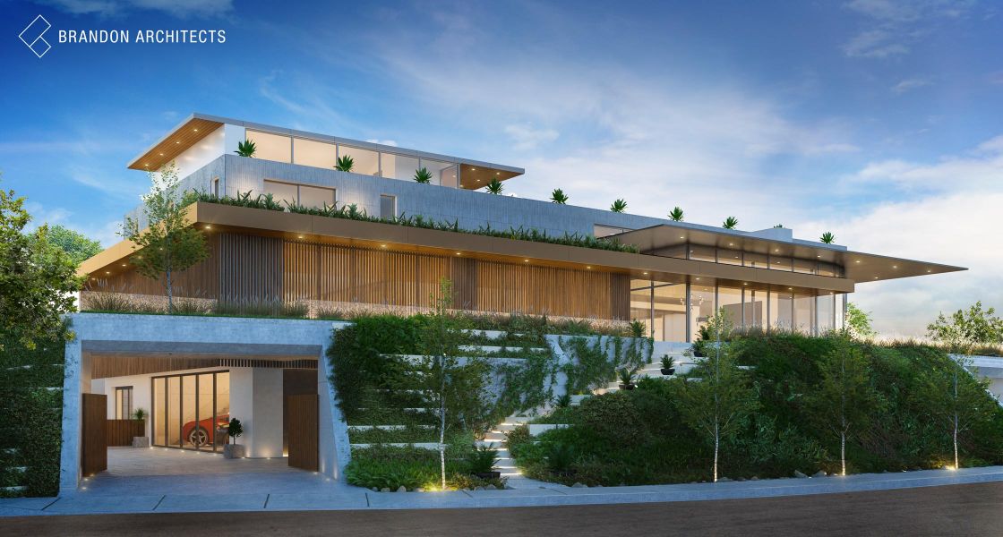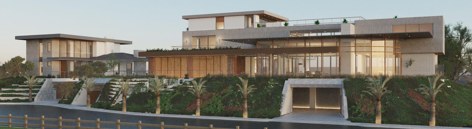 Newport Beach, CAThe design concept was based around balancing an exotic car collection and pull-through driveway with the need to elevate the home out of the existing grade to better match the surrounding, higher context. In addition to these concepts, we wanted to mitigate the perceived mass of the home and hide a majority of the garage doors and vehicular circulation as well as provide privacy and security.