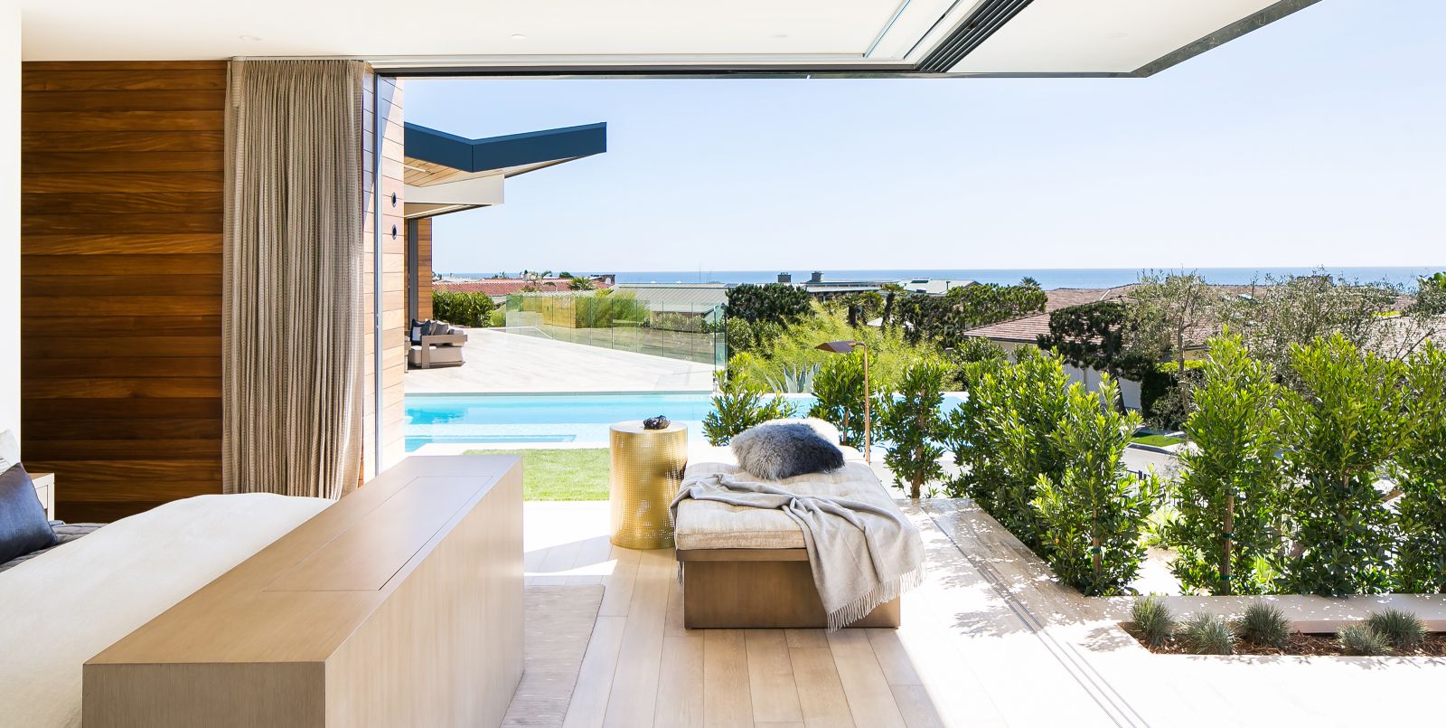 The entry and pool alignment was placed on axis with the Newport Beach harbor entrance and sunset views.