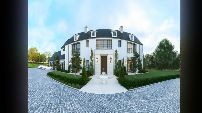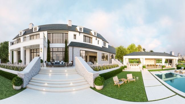 San Juan Capistrano, CAInspired by the French countryside, this Manor is characterized by a formal style rooted in symmetry, steeply sloped roofs, attic dormers, and a simple material palette. The exterior finishes consist primarily of white washed brick, slate, with some pre-cast concrete and metal accents. The grand scale of the home offers high ceilings throughout with 12 foot floor-to-ceiling window walls. Located on a 2-acre site, the large 2-story home enjoys larger open landscape areas as well as the pool terrace with covered cabana which is the perfect place to enjoy the summer.