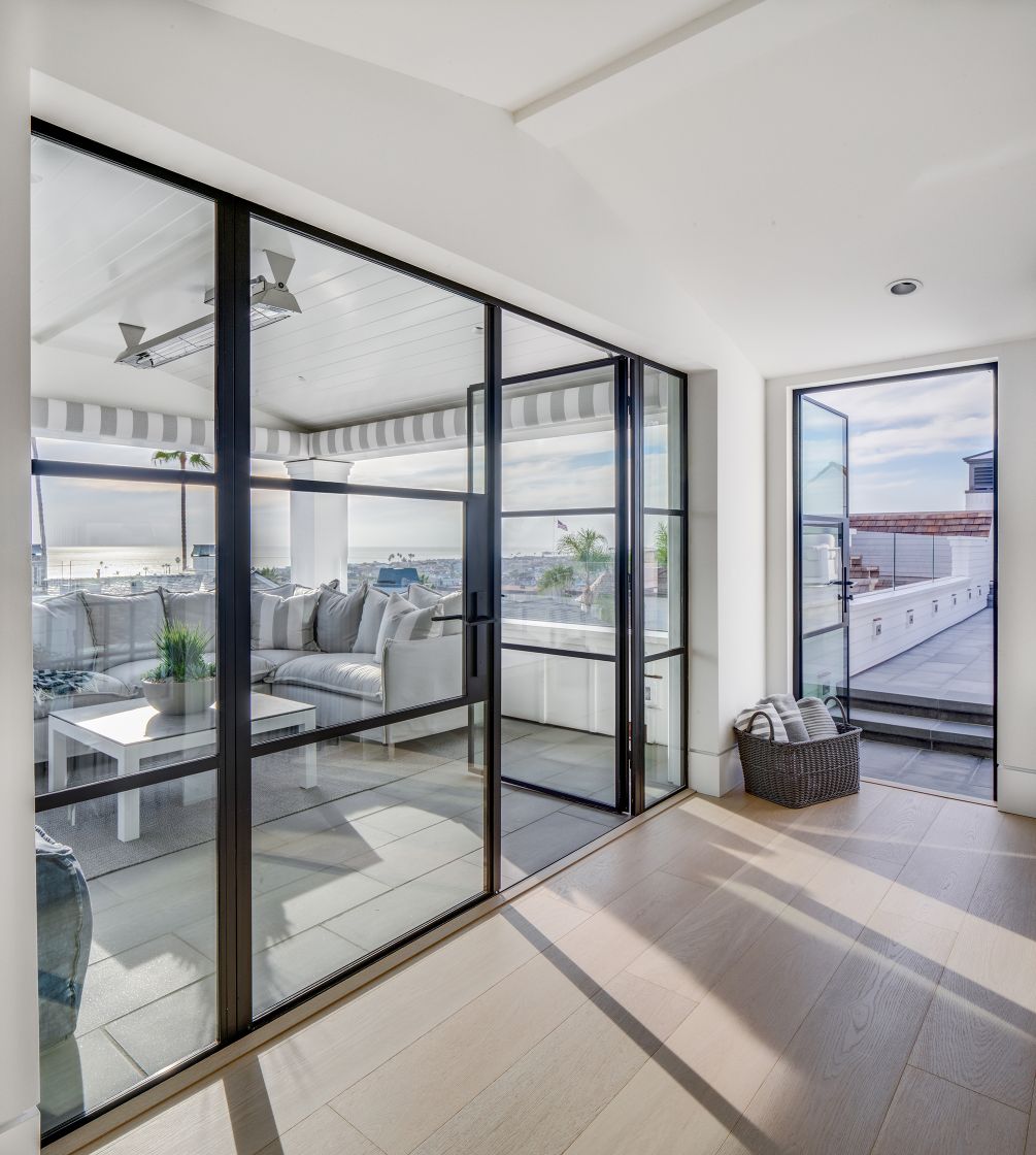 The top roof top deck takes full advantage of the panoramic views of the jetty beach and corona del mar.