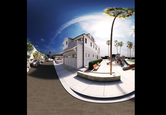 Newport Beach, CADesigned near Balboa Island's only bridge entry and next to the its only park, this home uses traditional white wood siding to create a warm beach house feel. The home takes advantage of its site and proximity to the adjacent park, maximizing light and exposure with designed fronts facing both the park and ocean channel. Rich wood elements details complement the white would siding, and can be found throughout the home.