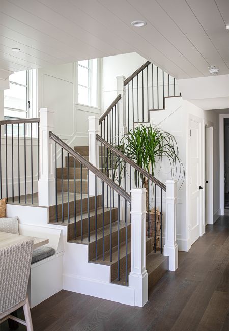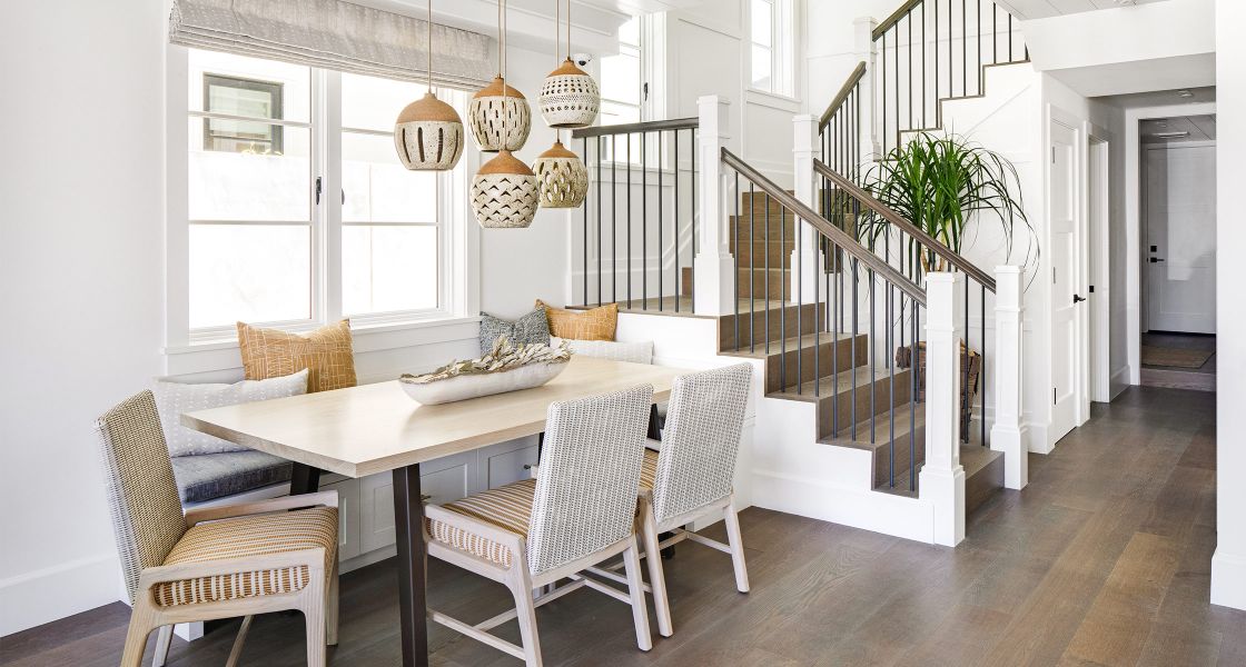 Under-stair closets and bench seating at the dining table allow the home to maximize each square foot for use