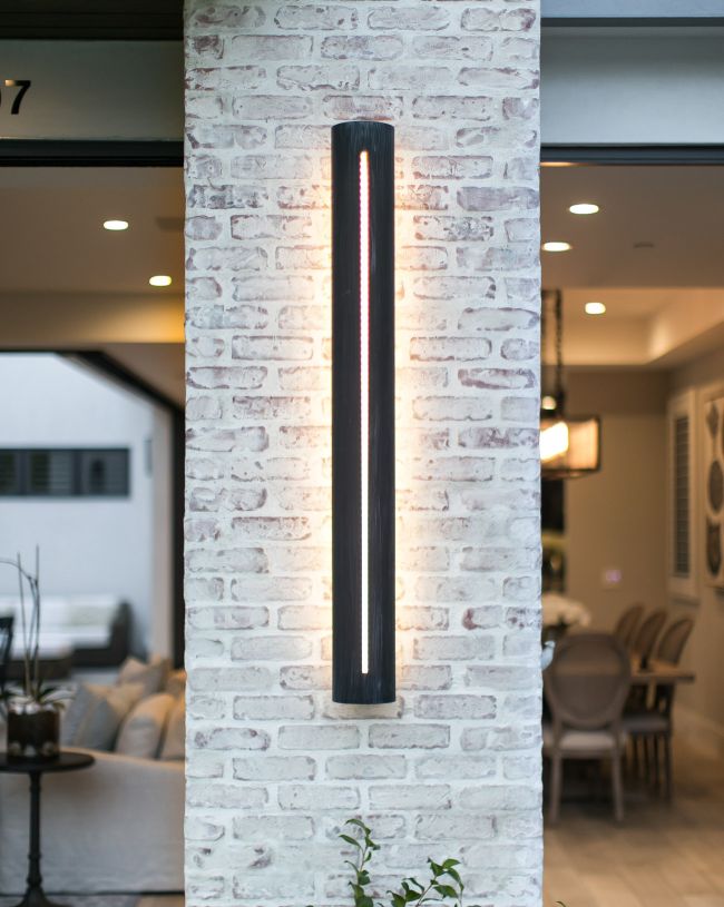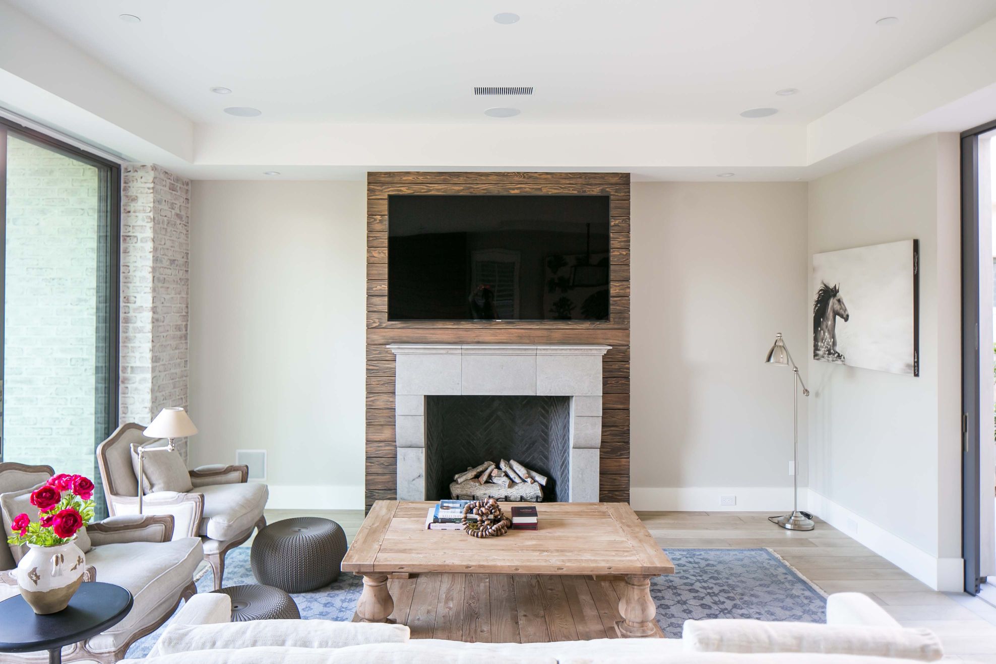 We also chose to do a large wood feature wall that continues deep into the interior to help accentuate the warm indoor/outdoor feeling and theme of the home. This theme is also present in its open floor plan and central courtyard opening to the kitchen and great room.