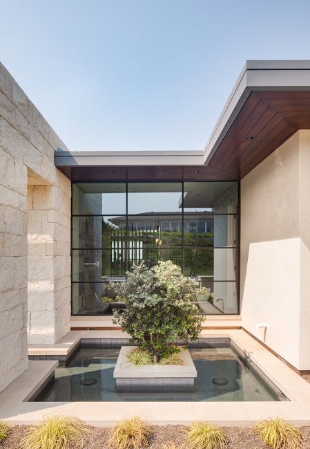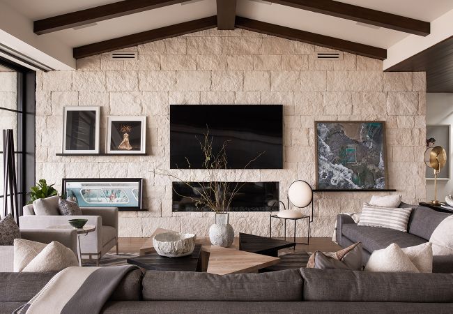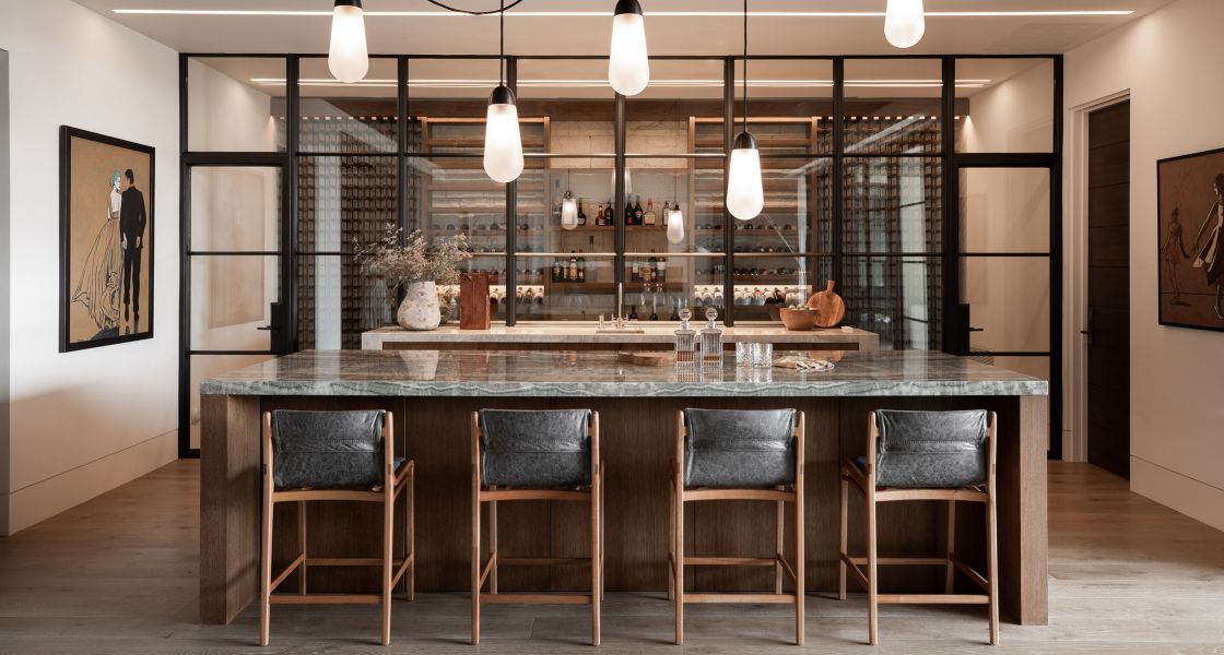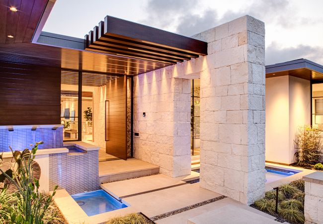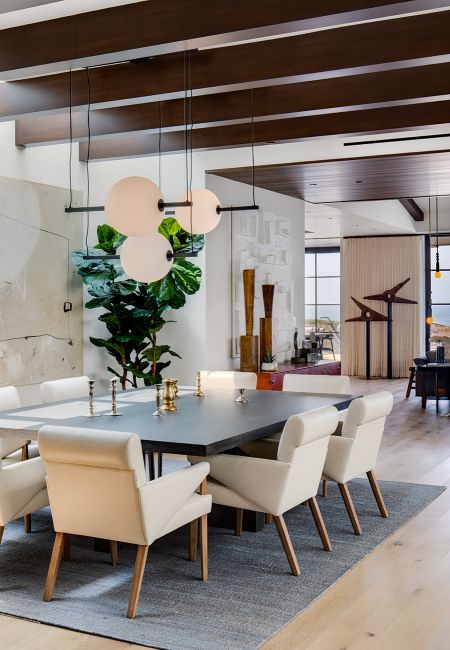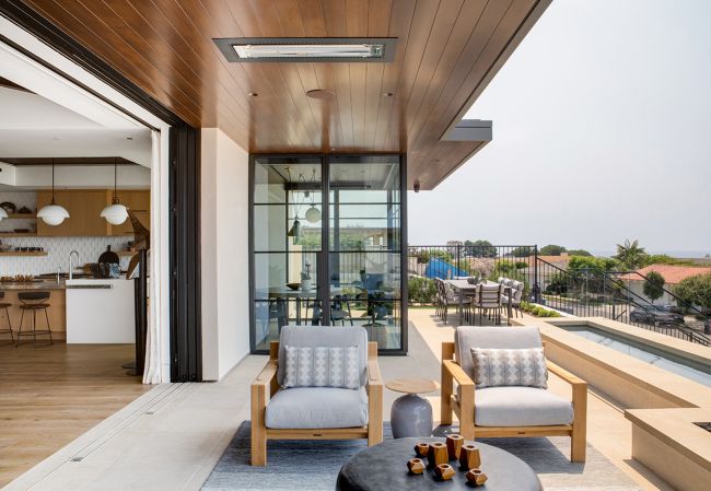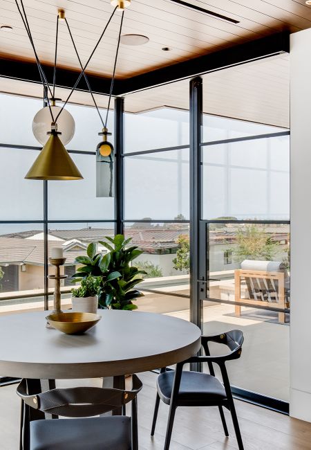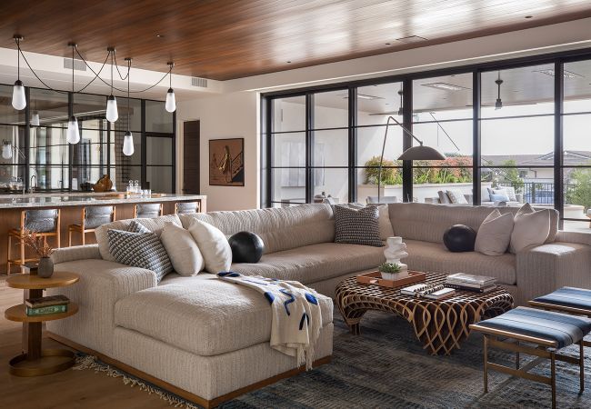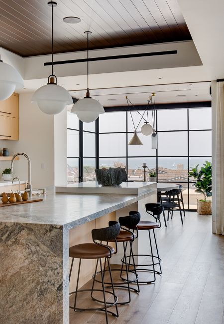 Corona Del Mar, CAOrrington II is where rich quality and craftmanship bring design to life. A home to share with family for generations, carefully designed spaces capture ocean views throughout the home and provide places to display artwork and unique furniture pieces. From the entry sequence with cedar beams to natural stone carrying from outside through the home, the textures and warmth are bold and soothing. Additionally, spaces are designed to provide entertainment for everyone. The kitchen sits along the South end of the home with geometric forms creating a functional and entertainment area, reaching to the view with a steel enclosure for the breakfast nook. The lower level features a prime location for the after-dinner crowd, game table, lounge, bar, and a wine lovers’ backdrop of bottles; all opening to the lower grotto accented with elements of fire and water.