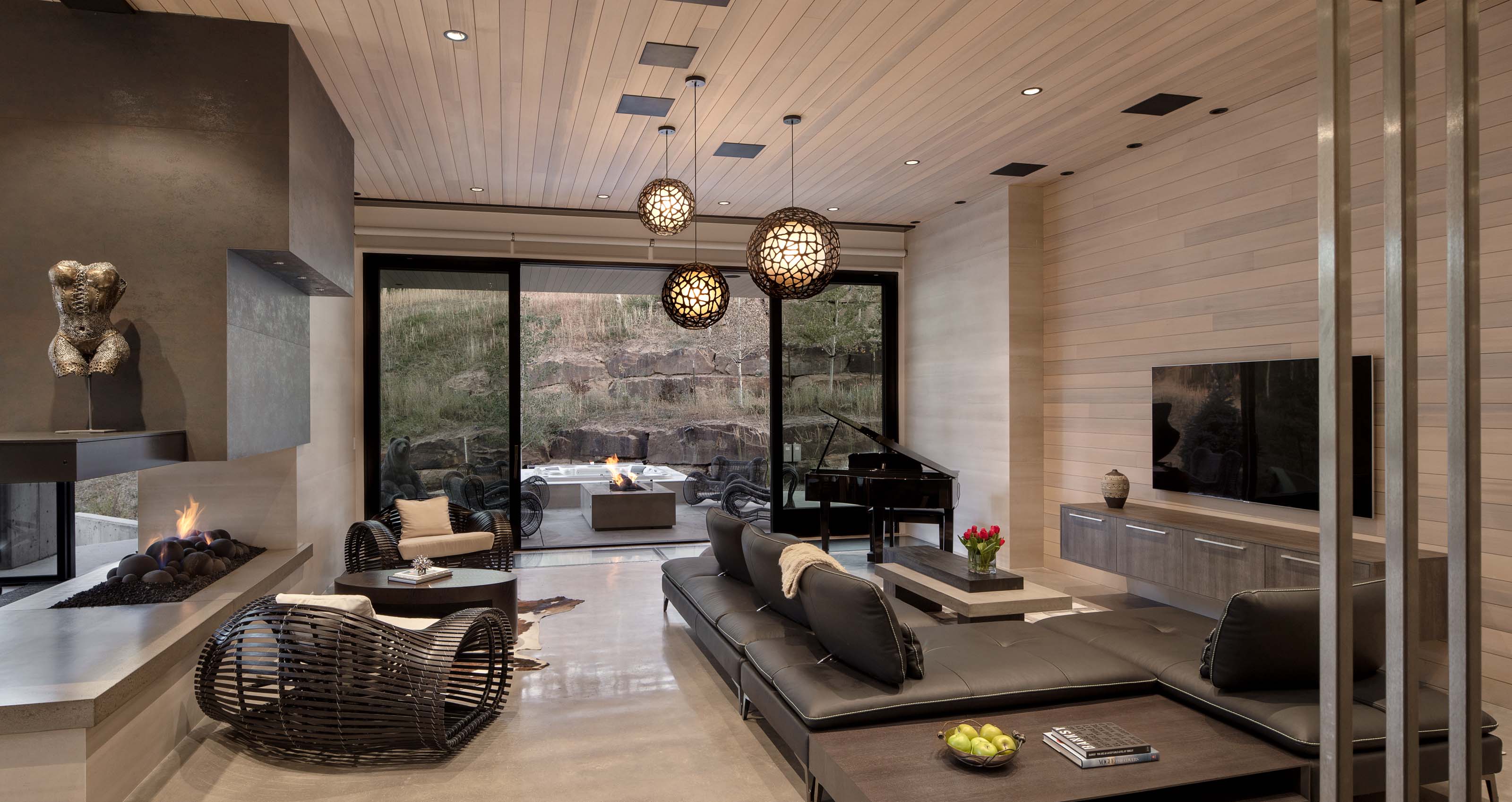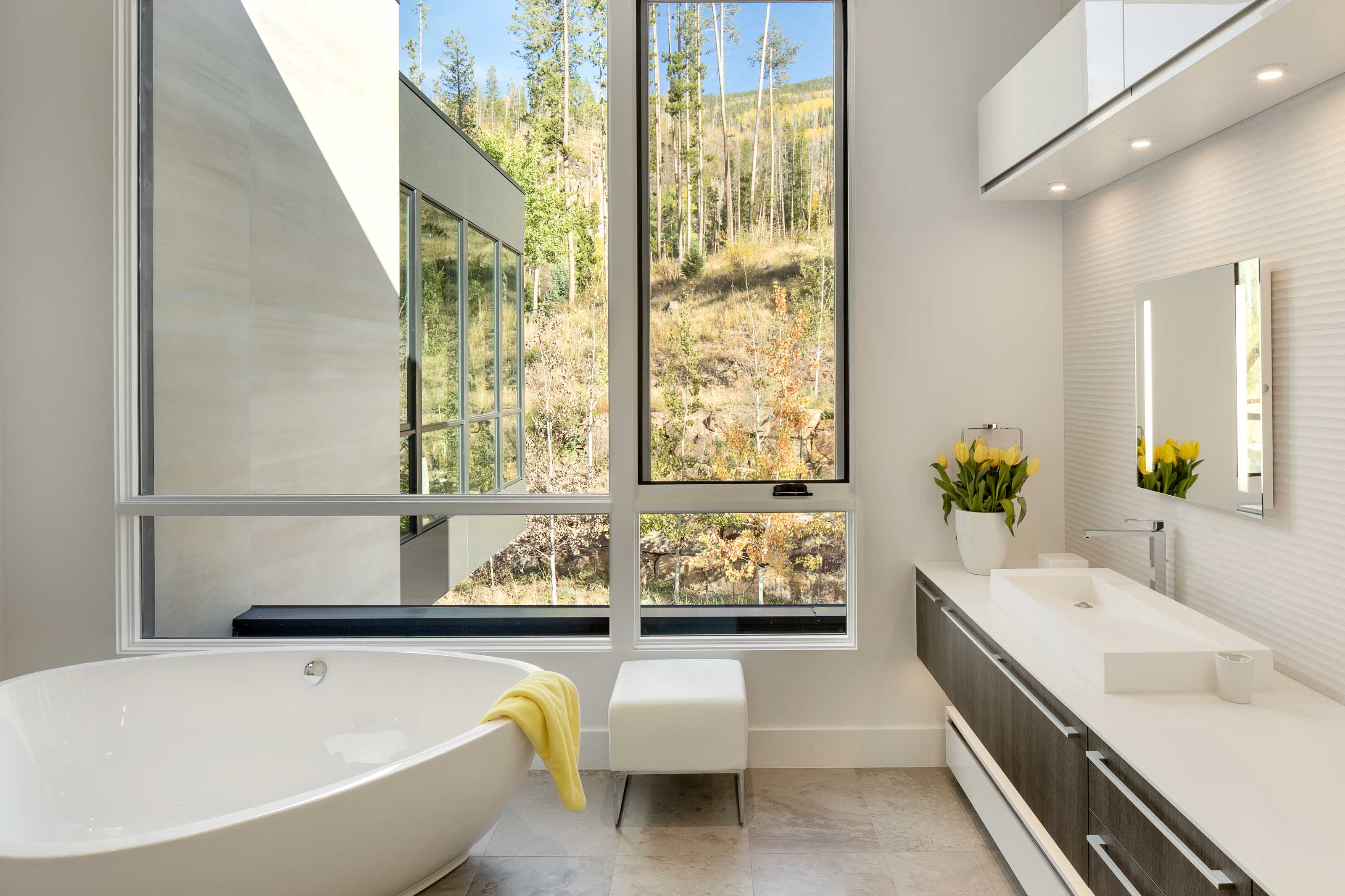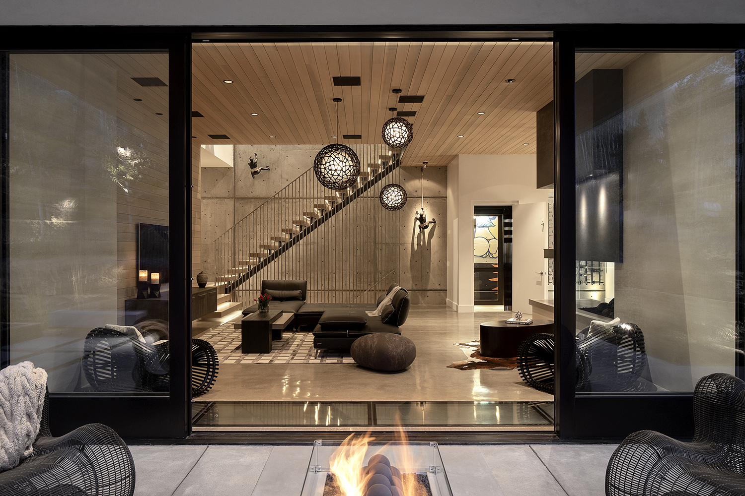 The master bedroom reaches toward the hill, immersing those within into the seasons that define Colorado and the Rockies.